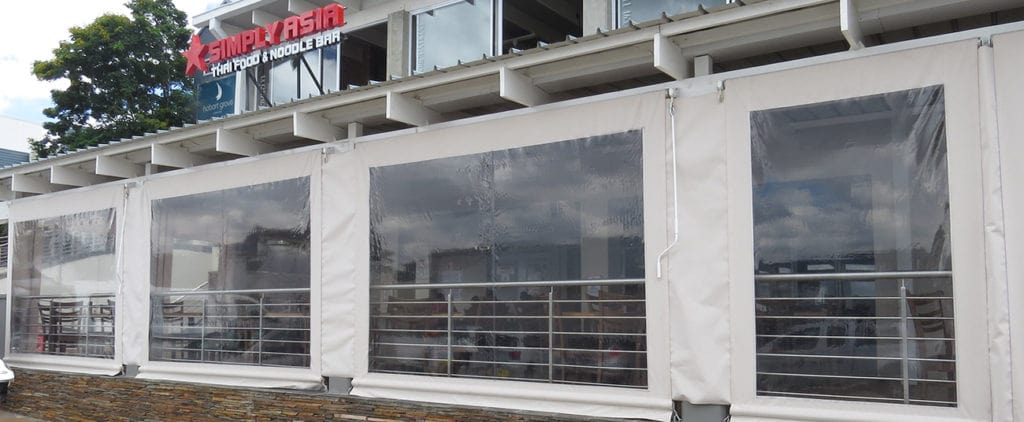 From shop-front awnings to restaurant patio closures. We will measure, manufacture, sign-write, and install to meet your specifications.
